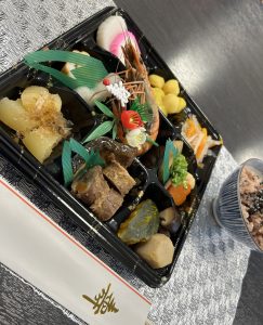 本日は、お正月のおせち料理の写真をアップいたします🍱華やかなおせちを前に、「きれいやね」「お正月やね」と、